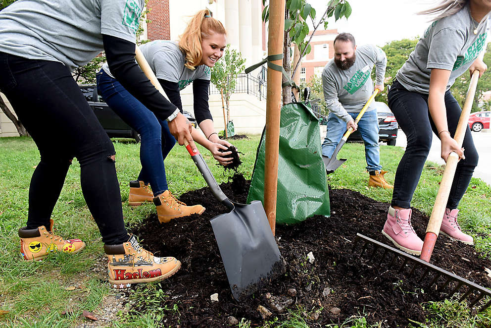 Meanwhile, volunteer teams on the ground planted trees, raked and mulched school property and cleared leaves and removed invasive species from neighboring Thomas Jefferson Park.