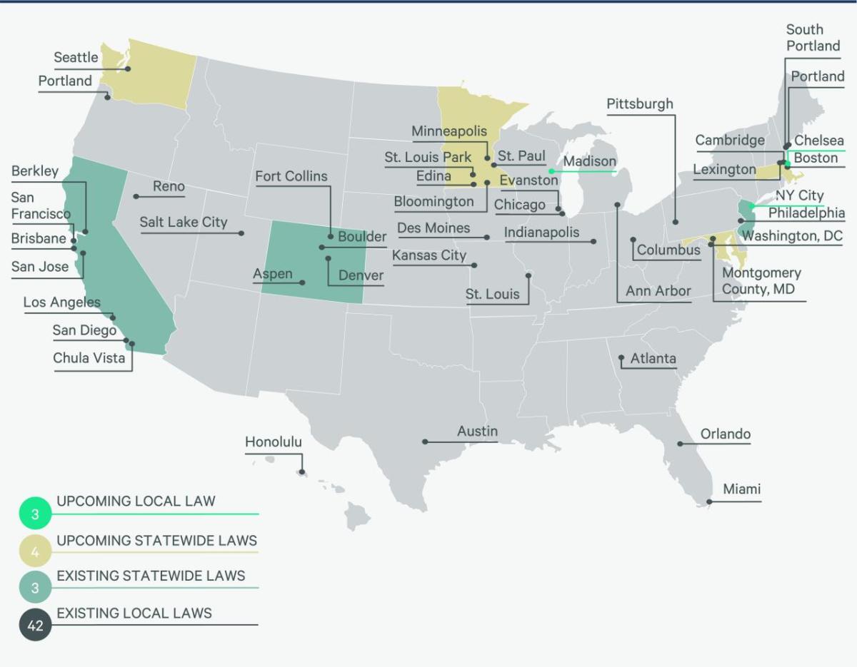 The adoption of statewide policies for BPS is also on the rise, reflecting the commitment of states to address climate change and foster sustainable practices on a broader scale. New Jersey joined California and Colorado in 2023. Maryland, Massachusetts, Minnesota and Washington are scheduled to do the same over the next three years. Statewide adoption ensures that compliance and community benefits will cover every corner of the state and not just cities. While Maryland’s statewide policy awaits implementation, some local legislators enacted the BPS policy at a countywide scale instead of within city limits. Montgomery County, MD, which is a suburb of Washington, D.C., is a primary example of such efforts.