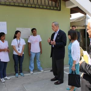 U.S. Senator Tom Carper (D-DE) visited Children International’s Mariscal community center, which serves some of the most vulnerable marginal communities in Guatemala City, Guatemala. He was accompanied by USAID’s Democracy & Governance Office (DGO) staff. USAID’s DGO implements a citizen security portfolio aimed to achieve “Greater Security and Justice for Citizens,” and among other things, USAID works in Guatemala to build awareness about the causes of violence and crime and to promote community-led violence prevention approaches focusing on youth development.