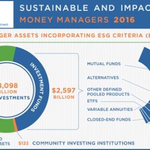 - $8.10 trillion in US-domiciled assets at the beginning of 2016 held by 477 institutional investors, 300 money managers and 1,043 community investment institutions that apply various environmental, social and governance (ESG) criteria in their investment analysis and portfolio selection, and