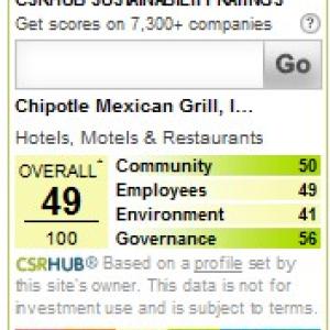 From the above, you can see that if you want a more sustainable sandwich, you might choose Chipotle. If you want to eat in a place that is friendly to Hispanics, you might choose McDonald's. We believe that improvements in sustainability will be driven by a wide range of factors--and a wide range of personal views. We try to give you the data you need to make your own decision about which company you want to buy from, sell to, or work with--based on what is important to you.