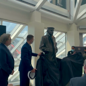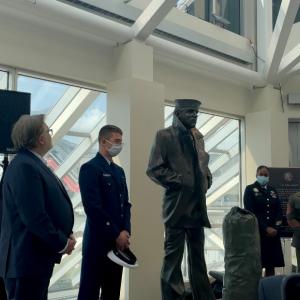 A dedication ceremony took place Friday September 10, 2021 at the Great Lakes Science Center where the statue is now on display.