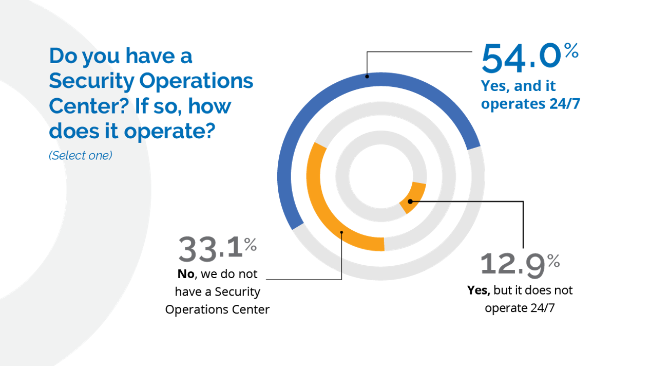 While such responses are commendable, none of them reflect the extent to which each of those SOCs is truly effective, or whether they have shortcomings. Are there multiple dedicated, full-time people assigned to that cybersecurity role? Are they fully qualified? Is that worker regularly reviewing logs? Is there intrusion monitoring and detecting?