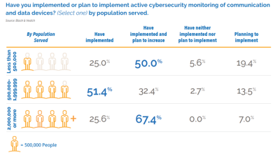 But when asked separately whether they’ve implemented or plan to put into action active cybersecurity monitoring of communications and data devices, eight of every 10 respondents said they either have adopted such measures or have done so with plans to bolster them.