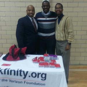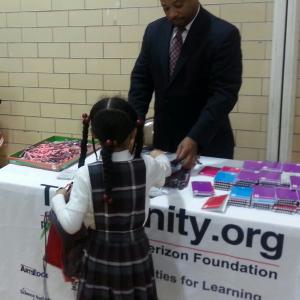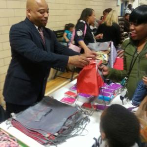 Verizon employees were on hand to give out backpacks, tote bags, note pads and pens among other items.