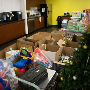 The 2013 Spirit of Giving campaign will be remembered as the year the cafeteria was occupied by skids of canned soup and countless boxes of lots of other non-perishable goods and toys. What was pegged as the 14th floor versus 15th floor competition between Vigilant Global employees essentially became a classic Vigilant showdown between founding partners.