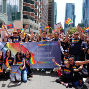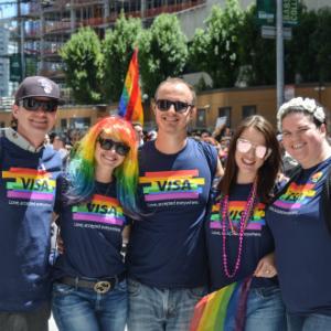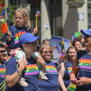 More than 200 employees gathered at Visa’s One Market headquarters to march in the annual 2017 San Francisco Pride Parade on Sunday, June 25 as part of LGBT Pride Month. Proudly wearing Visa Pride t-shirts (plus rainbow flower crowns, wings, tutus and more) and holding up “Love. Accepted everywhere” and “Love always wins” signs, members of the employee group brought friends and family to show their support of the LGBTQ+ community in the San Francisco Bay Area and around the world.