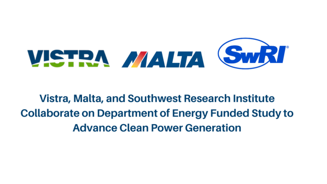 Vistra, Malta and Southwest Research Institute Collaborate on Department of Energy Funded Study to Advance Clean Power Generation