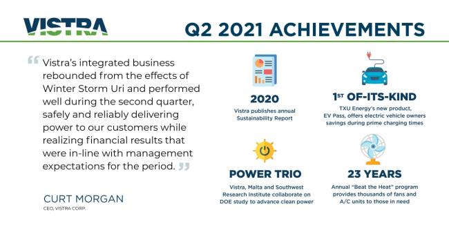 Vistra Shares Q2 Achievements in Innovation and Sustainability. See the included graphic.