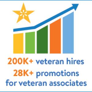 *Editor’s Note: These projections and reported hires/promotions include veterans hired under our original and expanded Welcome Home Commitment as well as other veterans hired by Walmart in this time frame. While we think it is particularly important to support soldiers as they make the transition to civilian life, Walmart believes all veterans deserve our respect and support, no matter when they left active duty.