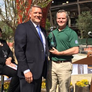 John Entsminger, Southern Nevada Water Authority General Manager, presented the Water Hero Award to Jim Murren, Chairman and CEO of MGM Resorts, on behalf of the Water Conservation Coalition.