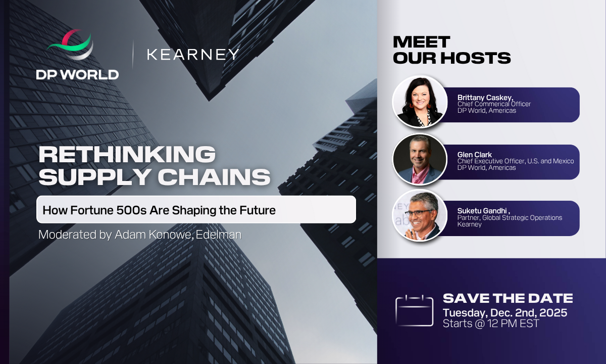 As volatility becomes structural – not episodic – global organizations are rethinking how strategy, execution, and leadership connect across their supply networks. To help leaders navigate this inflection point, international port and logistics company DP World and global management consulting firm Kearney are hosting a forward-looking webinar on how enterprises are redesigning their supply chains for the next three years.