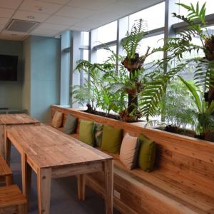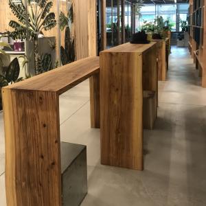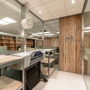 Another challenge we had was the limited space in the office, which made it difficult to implement standing workstations. Our solution was to replace the low sofas in the common area with natural wood standing tables. This way, staff dropping by from other offices and those who work on laptops can find space at these adjustable desks. Moreover, meetings can be conducted in these areas to maximize the usage of the space.