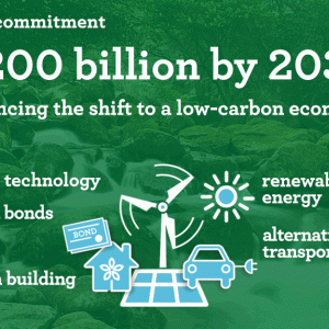 The company’s pledge is designed to promote the shift to a low-carbon economy. More than $100 billion will go toward financing clean technology and renewable energy projects.
