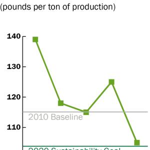 Although most of the residual materials are reused for other purposes or recycled, Weyerhaeuser is committed to reducing the amount of waste it sends to landfills. The company’s 2020 Sustainability Roadmap goal related to waste is to reduce the amount of material per ton of production that its manufacturing facilities send to landfills by 10 percent (compared with 2010 levels); in 2012, the company achieved a 9 percent decrease.