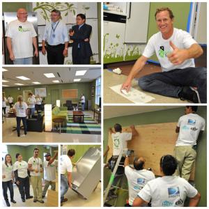 The teacher’s lounge at the Alfonso B. Perez Career and Transition Center, a school serving special needs students in East Los Angeles, looks very different today courtesy of a design plan that included updated décor, new appliances, gently-used furnishings, a fresh coat of paint and 20 hardworking volunteers from DIRECTV, Rebuilding Together and Scripps Networks Interactive.