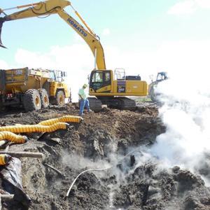 Landfills are generally considered to be hot landfills when temperatures exceed 140°F, although some site and regional conditions might explain higher normal temperatures. However, temperatures of up to 250°F have been measured in municipal solid waste landfills when they are undergoing a subsurface reaction. High heat has even been measured in saturated waste. At these temperatures, “thermal runaway” can occur. This means the increased temperature changes conditions in a way that causes even further increases, often leading to destructive results.