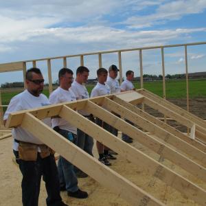 Whirlpool employees gather in Ottawa at the Habitat for Humanity wall raising ceremony
