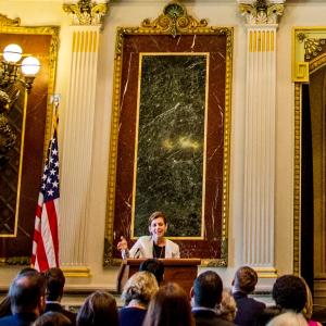 “Today, let’s start building a new normal in pro bono service,” Points of Light CEO Tracy Hoover told the guests. “Let’s build a model that addresses the reality of scarce resources, limited time and increased needs that so many nonprofits feel.”