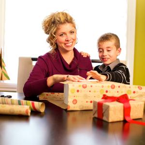 Instead of wrapping every little item, try putting gifts into a re-usable basket or bag, using ribbons and bows to decorate;