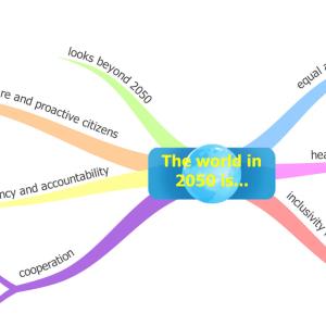 The question was posed by one of the young professionals tasked with bringing a twenty-something perspective to the conversation. The speaker elaborated that he would still be working in 2050, and he and a colleague presented two mind maps showing how they would like to see the world in 2050 and what they think needs to happen to get there.