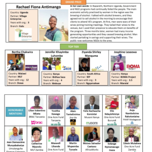 Catherine, Microloan Foundation Zambia: Catherine works in Microloan Foundation’s Livingstone Branch. MicroLoan Foundation shares, “Currently our branch has been affected negatively by the COVID-19. Livingstone is a border town where the majority of our clients depend on imports from neighboring countries. With borders closed, businesses were impacted negatively. Despite the COVID-19 restrictions, Catherine has gone the extra mile in customer service. She engages her clients through mobile phone and engages center leaders.”