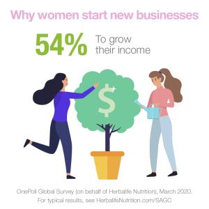 More women are turning to entrepreneurship, and according to Herbalife Nutrition’s second annual Global Entrepreneurship survey, 72 percent of women want to open their own business. Women entrepreneurs create a source of income for themselves and their families. They are a vital part of our world's economic engine that society needs to support with flexible opportunities, mentorship, and access to capital.