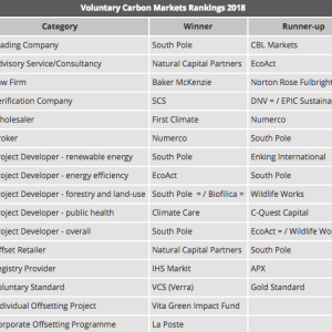 The winners in Environmental Finance's 2018 Voluntary Carbon Markets Rankings point to several factors encouraging companies to buy more offset credits: the inclusion of the REDD+ methodology for forestry credits in the Paris Agreement; strong expected demand for offsets in the forthcoming mandatory aviation emissions regime; significant purchases resulting from Colombia’s new climate policies; growing corporate interest in the UN’s Sustainable Development Goals; and the pressure for greater disclosure of carbon emissions data.