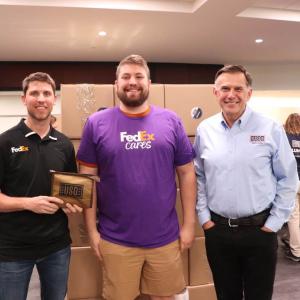 In addition to the support provided by the FedEx Racing team like Hamlin and Hodel, associates from the local FedEx distributions and operations centers volunteered to help and stuffed over 2,500 care packages.