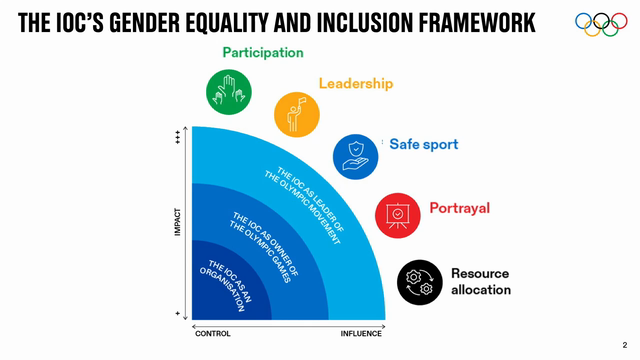 The IOC’s focus for the 2021-2024 period is to build on these successes and contribute to the UN Sustainable Development Goals by focusing on five key areas: participation, leadership, safe sport, portrayal, and resource allocation.