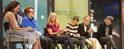 Tennis icon Billie Jean King, along with members of the cast and creative team behind Fox Searchlight’s new film Battle of the Sexes, met on the Fox Lot on September 15 for a panel discussion about gender equality and inclusion in professional sports and beyond. The film tells the story of King’s legendary 1973 tennis match against former men’s champion Bobby Riggs, a televised event that propelled women’s tennis onto the world stage. Women of FOX Sports organized the panel, which was moderated by Fox Entertainment Group Deputy General Counsel Jill Ratner and featured Battle of the Sexes directors Valerie Faris and Jonathan Dayton, and cast members Elisabeth Shue and Natalie Morales.