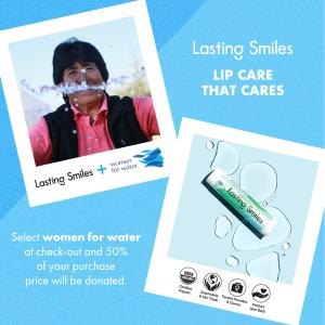 “The pandemic and climate change have deepened the need to join together to take action and raise money for water services that promote health and wellbeing for our communities,” said Zoe Mesnik-Greene, Founder of Lasting Smiles. “With this partnership, supporters can purchase sustainable and affordable organic lip balms to "hydrate" their lips and 50% of their purchase price is donated to women for water to “hydrate” communities in need.”