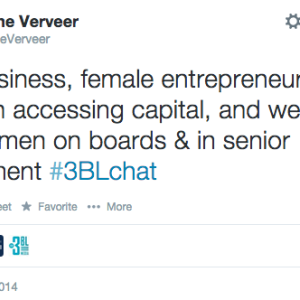 “In business, female entrepreneurs face barriers in accessing capital, and we see fewer women on boards & in senior management #3BLchat” - (by @melanneverveer) https://twitter.com/MelanneVerveer/status/504717475465162752