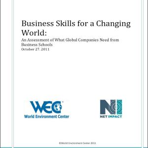 (3BL Media / theCSRfeed) Washington, D.C. - October 27, 2011 - The World Environment Center (WEC) and Net Impact today released a joint report evaluating the skills required for advancing the sustainability strategies of global companies. The report, Business Skills for a Changing World: An Assessment of What Global Companies Need from Business Schools, highlights the skills required for careers in companies with strong sustainability commitments, and discusses what business schools can do to ensure graduates have those skills.