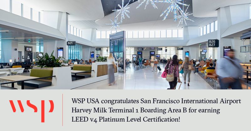 WSP Provides Program Management Support to SFO Harvey Milk Terminal 1 Boarding Area B, the First LEED v4 Platinum Airport Project