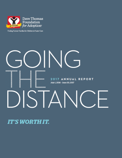 The Dave Thomas Foundation for Adoption is excited to share our successes from our 25th anniversary year. Check out our annual report to learn more about the families created through the Wendy's Wonderful Kids program, the adoption recruiters who are so dedicated to our mission and the donors who make their work possible.