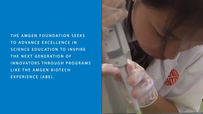 The Amgen Foundation, in partnership with the Singapore Science Center, launched the Amgen Biotech Experience (ABE) program in Singapore as part of a $10.5 million investment in the longstanding science education program. For nearly 30 years, ABE has empowered high school science teachers to implement real-world biotechnology labs in their classrooms, helping their students better understand science and how it influences their daily lives. The three-week in-class lab initiative provides teacher professional development, teaching materials, and research-grade equipment to classrooms to immerse students in the concepts and techniques scientists use to discover and develop medicines. Globally, ABE is expected to reach nearly 900,000 secondary school students by 2020 in 18 regions around the world. Learn more about ABE by visiting http://www.AmgenBiotechExperience.com.