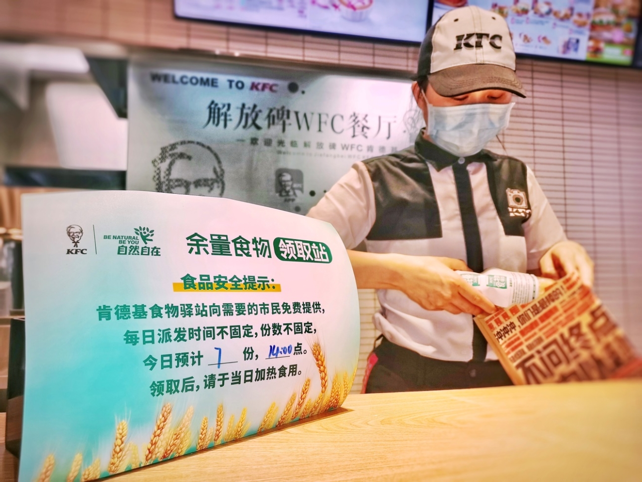 Yum China has been working on reducing food waste by employing technology, such as AI and IoT, to improve sales forecasting accuracy and inventory management. As store traffic is affected by many variable factors such as the weather, stores may occasionally have food left unsold. In September 2020, KFC launched its pilot Food Bank program in Shenzhen to distribute surplus food for free to nearby residents in need. As of the end of 2021, the Food Bank program covers over 120 KFC restaurants in 27 cities.