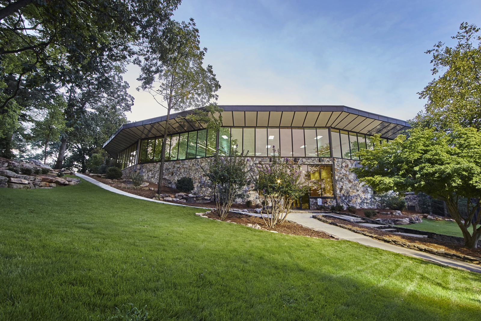 Located in Dalton, GA, the 33,000 square foot Light Lab is a mid-century modern building that features 360 degree views of landscape and natural vistas. Built in the early 1960s as the headquarters for World Carpet, the building has been used most recently as a showroom space for Mohawk Flooring...